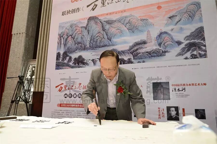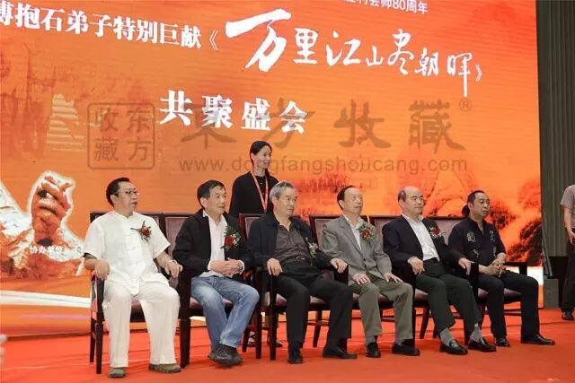 两位主创大师清水河、刘二郎在主持人的引导下,畅谈了他们的创作历程,也谈到了创作此幅巨作用到的众多国画笔法,在场的藏友听了大师一席话后,对中国国画技法有了更深的了解。“今年适逢长征胜利会师80周年纪念,由我刘二郎与清水河大师联袂创作巨幅《万里江山尽朝晖》,全权委托东方收藏独家代理,只有在东方收藏才能收藏到这幅巨作真迹。其它地方收藏的,均是赝品!”在发言的最后,刘二郎大师特别强调。
