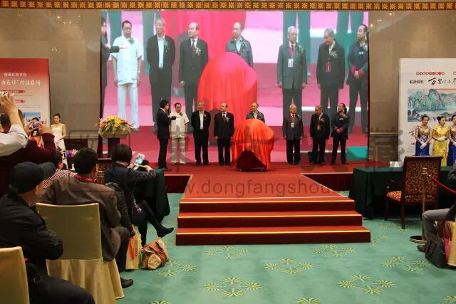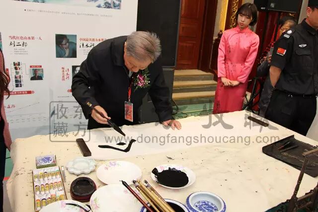 2016年5月14日,为弘扬长征精神,传承红色文化,在长征胜利会师八十周年到来之际,由上海东方收藏主办,全国毛泽东纪念馆联谊会承办的李可染、傅抱石弟子特别巨献《万里江山尽朝晖》新闻发布会在北京钓鱼台国宾馆举办。国家一级美术师、北京中国水墨画艺术院院长、山水画宗师傅抱石弟子清水河大师,国家一级美术师、国画泰斗李可染弟子、中国书画家协会会员刘二郎大师亲临发布会现场,场面恢宏。另外还特别邀请到了中国人民革命军事博物馆原馆长、中国国史学会常务理事、中国书法家协会会员郭得河先生,原毛泽东主席卫士、中国毛体书法家协会顾问、著名毛体书法家田云毓先生,中央电视CCTV-4《国宝档案》专家顾问、上海长三角收藏研究会会长唐恺教授,七届全国人大代表、解放军军事科学院政治委员张序三中将及原解放军体育学院训练部部长、广州通信学院训练部部长、总参谋部通信部老干部书画协会秘书长史祥彬少将。80年前中国人民解放军们历经2年的时间,克服种种困难,终于胜利到达陕北革命根据地。开创了中国革命的新天地,创造了人类历史上伟大的奇迹!红军长征的胜利,为后人留下了取之不尽的思想财富--长征精神。为了弘扬长征精神,李可染、傅抱石弟子特别巨献《万里江山尽朝晖》营运而出,这是对历史纪念意义时刻的铭记,具有鲜明的时代意义和历史意义!在本次发布会上,郭得河老师为本次发布会致开幕辞,他提到:“长征精神是中华民族百折不挠、自强不息的民族精神的最高表现,是保证我们革命和建设事业从弱小走向强大的精神力量。红军的大无畏精神,永远激励着我们前进!”激昂的开幕词点燃全场气氛。国家一级美术师、山水画宗师傅抱石弟子清水河大师与国家一级美术师、国画泰斗李可染弟子刘二郎大师谈起为了创作这幅巨画重新踏上了红军长征路线,历经一年时间体会长征途中的累与苦,最后结合自己的心得体会决定以革命圣地延安宝塔山为核心画面,创作了此幅巨作的故事,并提到本幅《万里江山尽朝晖》全权委托东方收藏独家代理,只有在东方收藏才能收藏到这幅巨作真迹,其它地方收藏的,均是赝品。中国毛体书法家协会顾问、著名毛体书法家田云毓先生曾是毛泽东主席卫士,他对刘二郎和清水河两位大师一起创作的《万里江山尽朝晖》非常看好。“红色题材的书画作品一直是收藏市场上的重头戏,看成是收藏界永远不倒的旗帜。早在2010年李可染大师创作的水墨巨制《长征》以1亿元左右成交,《井冈山主峰图》也拍卖了900多万元。这次,两位大师重走长征路线,创作的巨幅书画,纪念意义非常重大,市场是一定升值非常快,所以说收藏要趁早啊!”在模特展示本次发布会的主品《万里江山尽朝晖》,中央电视CCTV-4《国宝档案》专家顾问唐凯先生也对画作做出了点评,他从李可染、傅抱石大师的画作开始,深度剖析中国近代国画的艺术特点,“作为齐白石的第二代弟子,刘二郎大师所作的山水、人物,继承了其师李可染和师尊齐白石笔墨雄浑,色彩明快,造型生动,意境朴实的创作特点;清水河大师的作品无论从艺术角度还是绘画技法上,都极具傅抱石作品的气韵意境,可以说幅幅都是难得的臻品之作……所以说这两位大师联袂创作的这幅巨作《万里江山尽朝晖》,未来的升值潜力可想而知!”而为弘扬长征精神,主办方东方收藏为了这次发布会,特别赠送给现场藏友们三个奖项:现场第一个付全款收藏《万里江山尽朝晖》的藏友,将获得张序三中将现场书法墨宝一幅。第一个付全款购买孤品者,首单孤品奖为张序三中将现场书法墨宝一幅。另外今天付款金额最高的藏友,可获赠张序三中将现场书法墨宝一幅,活动力度之大前所未有,特别给力!且所有已经收藏的藏友,在工作人员的安排下,都能排队依次和老师合影留念,并获得专家老师们的亲笔签名。