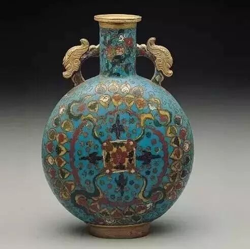明景泰款掐丝珐琅龙耳扁壶,现藏台北故宫博物院