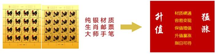 为弘扬中国生肖文化,由中国邮政集团公司天津市分公司,以2017丁酉年两版生肖鸡票为蓝本,公开发行《2017丁酉鸡年生肖邮票大版纪念金银套装》。