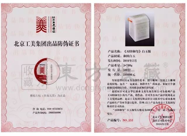 如您一直在关注收藏市场,有款玉玺您一定知道——“亚投行”AIIB和玺,这几天一直占据收藏资讯的头条!据前线的小伙伴向小编透露,这款玉玺在收藏界已经快被抢疯了!2016年,历经800余天筹备,由57国共同筹建的亚洲基础设施投资银行(简称亚投行,AIIB)正式开业,亚投行的成立是中国作为一个世界大国和平崛起的标志。为纪念这一历史性的时刻,由国家权威授权,“国礼造办”北京工美集团倾力打造出的四款至尊宝玺——AIIB和玺,正式登台亮相,作为国礼送至57个成员国领导人手中。应市场需求,让更多的普通藏友也能参与这一重大事件,中国工美集团决定出品与国礼同材质同工艺同规格的“AIIB和玺”,发布仪式于2016年3月5日在北京钓鱼台国宾馆举行。北京工美集团领导、中国工艺美术大师王希伟等专家也出席了发布仪式。每一尊 “AIIB和玺”典藏版重量在740克以上,由整块和田玉雕刻而成。玺钮造型以汉瓦玺为创作蓝本,镂空雕刻,玺钮之上雕刻荷花纹饰,包含“一瓦成家,和谐共生”的寓意。玺钮之下雕刻代表财富与丰收的饕餮纹门环,门环左右雕刻寓意吉祥的传统夔龙纹饰。玺基正面雕刻“AIIB和玺”、“团结合作、开放包容、共谋发展”以及“隆重庆祝"亚洲基础设施投资银行"开业”中英文字样;玺基两侧分别雕刻57个创始成员国中、英文国名;玺基背面雕刻亚投行标志及“亚洲基础设施投资银行”中文字样宝玺印文为“和”字篆体。“AIIB和玺”自面世以来,一度造成藏友疯狂抢藏的局面,分析原因,无非为以下几点:由57国共同筹建的亚洲基础设施投资银行是近几年来世界金融圈最大的事件之一,它将影响着亚洲经济格局,甚至世界经济格局的变化。而“AIIB和玺”又是国家指定的唯一“国礼”,其权威意义可想而知。“AIIB和玺”精选国家顶级和田玉料,由“国礼造办”北京工美集团携顶级雕刻大师出品,2008奥运徽宝、2010上海世博金·玉和玺、2014年国家APEC国礼均由北京工美集团设计制作出品。“AIIB和玺”全套四尊,每一尊的发行量都很有限,尤其是白玉,全球仅500套,其余也仅数千套,收藏市场一项遵循“物以稀为贵”的原则,稀少的发行量注定它不凡的升值空间,所以遭到抢藏也不难理解了。“AIIB和玺”的抢藏热以致各大市场纷纷售罄告急,小编在此提醒广大藏友,在抢藏和玺时,一定要选正规的销售渠道,认清正品再购买,千万不要贪一时便宜,上了大当。东方收藏作为国内最有影响力的收藏品公司之一,一直秉承顾客至上的原则,为藏友带去最真最优最有价值的收藏品。本次“AIIB和玺”发布之后,东方收藏第一时间获取由工美集团权威授权的“亚投行国礼《AIIB和玺》推广发行授权书”,保证送到藏友手中每一尊宝玺货真价实,支持检测!若您因错失2008奥运徽宝和2010上海世博金·玉和玺而后悔不已时,“AIIB和玺”将是您近几年的最佳选择,不要再感叹奥运徽宝价翻近50倍,下一个收藏界传奇就摆在您的眼前,再不抓紧抢购,升值赚钱又成别人家的事了!