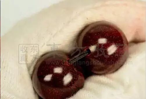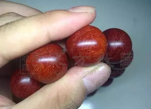 油性会顺着木质的导管,从棕眼渗出来。油性好的新珠子,放上一晚或几天,再拿出来,上手就会有阻滞感。油性是通过手感体现的,也能通过色泽体现出来。(油性、密度、克重、尺寸必须合一)古代没有染料。尤其是红色的染料更稀缺,那怎么办?小叶紫檀磨粉,做成染料染色能力极好。所以用小叶紫檀在白纸上一划,就能留下颜色,跟画笔一样,只不过是昂贵的画笔。所以小叶紫檀掉色属于正常现象。木质好,油性好的小叶紫檀,在打磨加工后,表面形成的一种通透感的荧光。且不会因为盘玩而消失。
