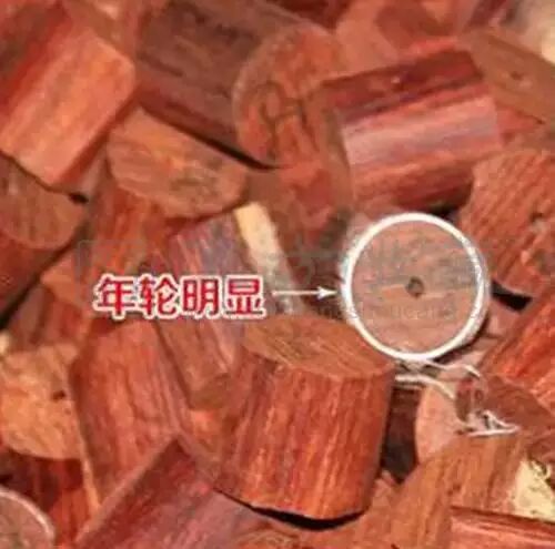 但是小叶紫檀生长极其缓慢,木质极其细密。5年才长一轮。一轮又非常细密。就像千层饼一样。层数特别多,特别细,像纸一样,比纸还薄。300年才长碗口那么粗。600年也就是一个二大碗那么粗,就是大料了。他的生长轮,非常细密不明显,明显的肯定不对。这是个人识别的最后一步,在木材的三个切面上,横切面提供了最为丰富??信息,要仔细观察横切面的特征,与国家标准《红木》中的描述和图片相比较,若是小叶紫檀则相符(若没条件此步可略去不做)。若能通过以上标准的检验就可确定这种木材是小叶紫檀,若有其中任何一步明显不符合则可判定不是小叶紫檀,若仍有疑问,可取样(麻将大小)送有关部门(比如中国林科院)做木材树种鉴定。