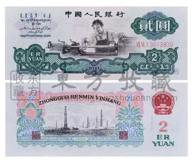 票券正面图案是车床工人生产作业,象征工业为主导。票面正面主色是墨绿色和黑色,触摸票正面的花纹有极强的凸凹感,背面图案为国徽、石油矿井作业,背面主色为绿色、粉红色、黑色,古币水印存世量相当少,是三版币五珍之一。