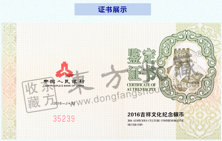 东方收藏承诺遵守商业道德,诚信为本、依法经营,接受会员监督。东方收藏所有藏品均有相关机构出具的证书,如果您发现虚假藏品,即可假一赔十。