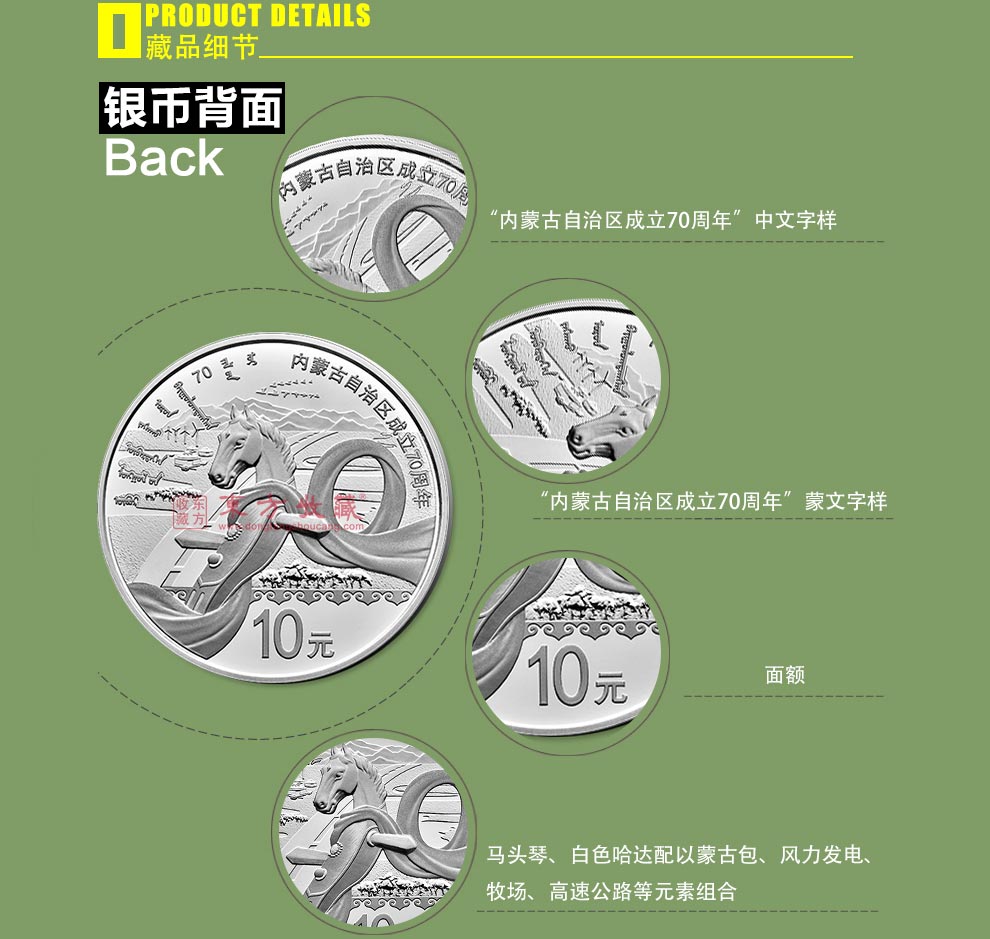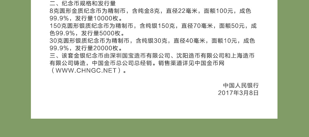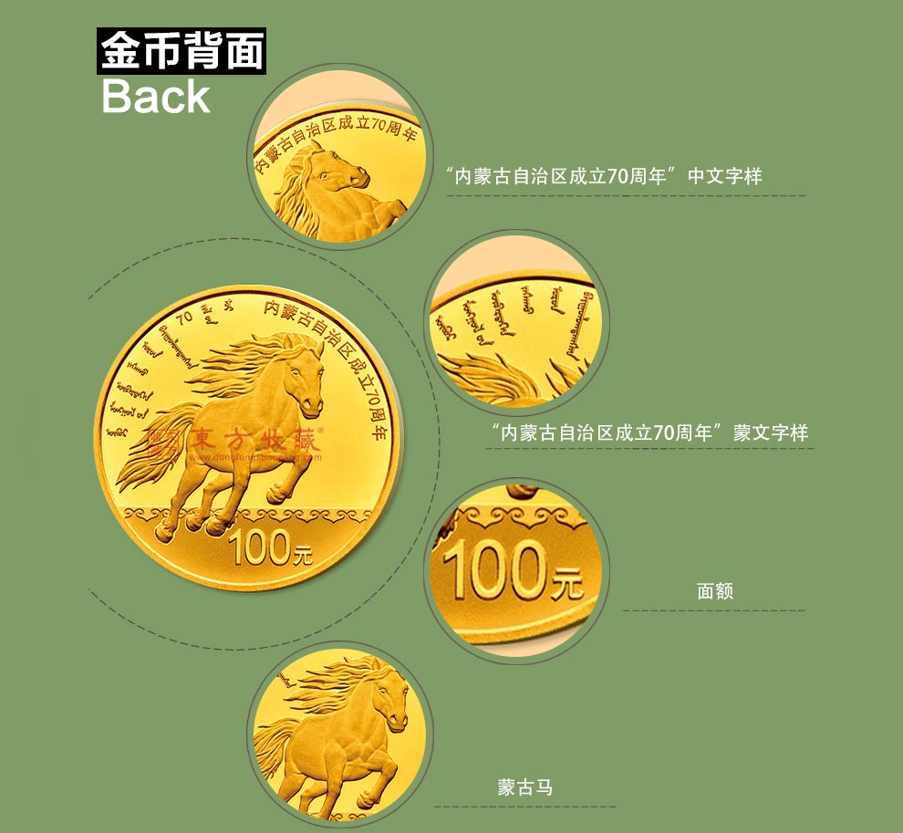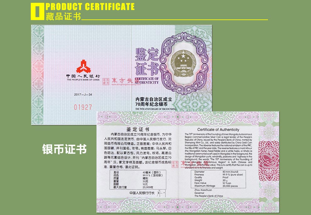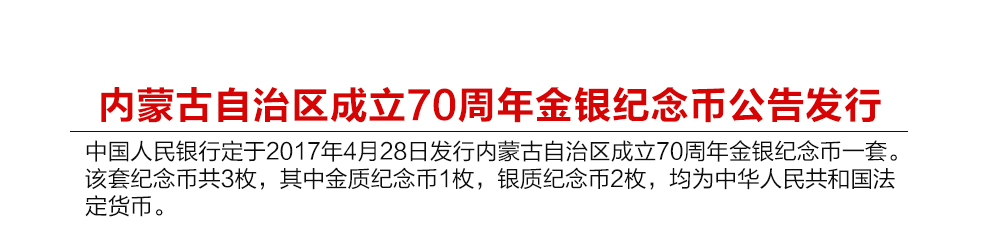 2017年内蒙古自治区成立70年金银纪念币 8克金币+30克银币