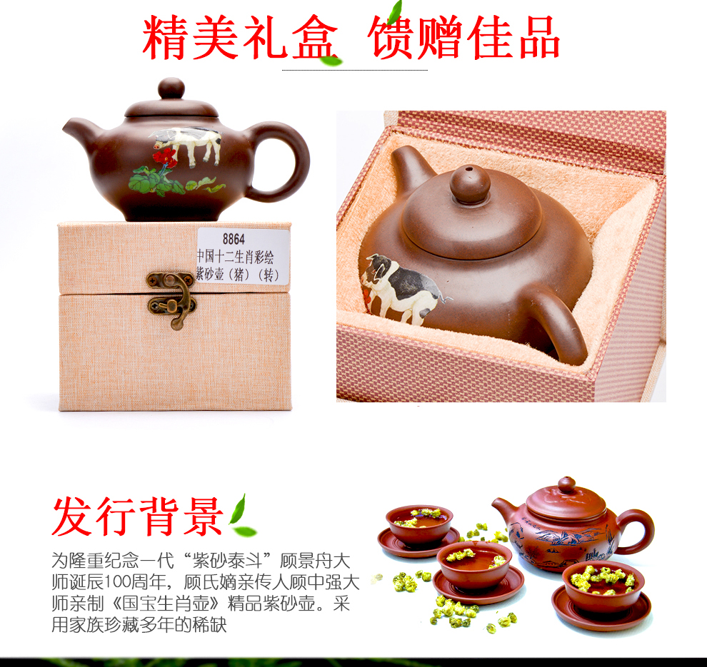 中国十二生肖彩绘紫砂壶 猪壶 紫砂茶具 喝茶