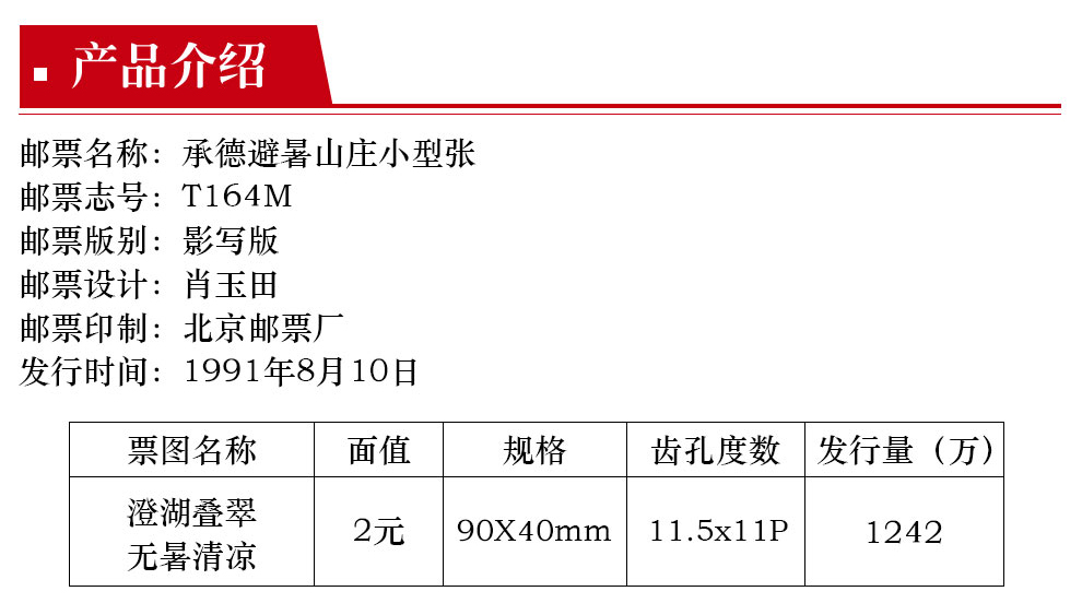 T字邮票 T164M 承德避暑山庄邮票 小型张