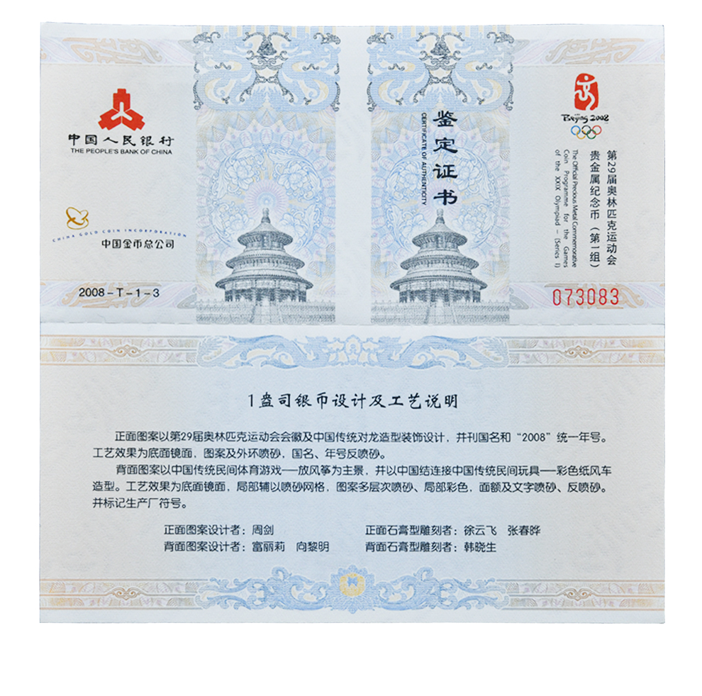 2008年北京奥运会纪念银币 第一组 1盎司银币 4枚装