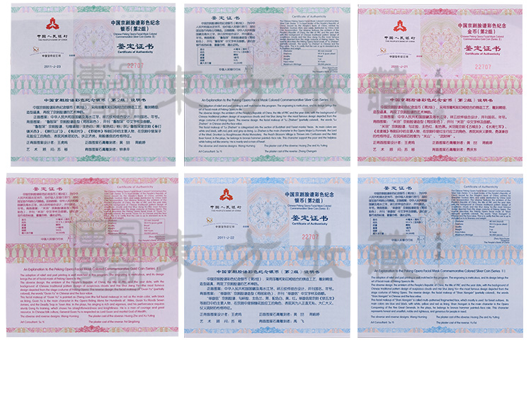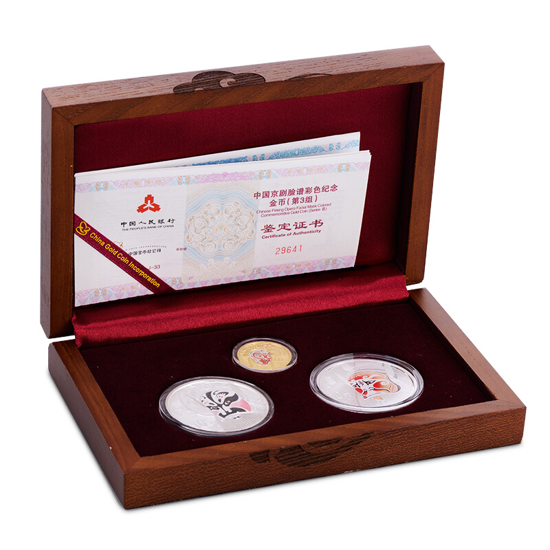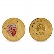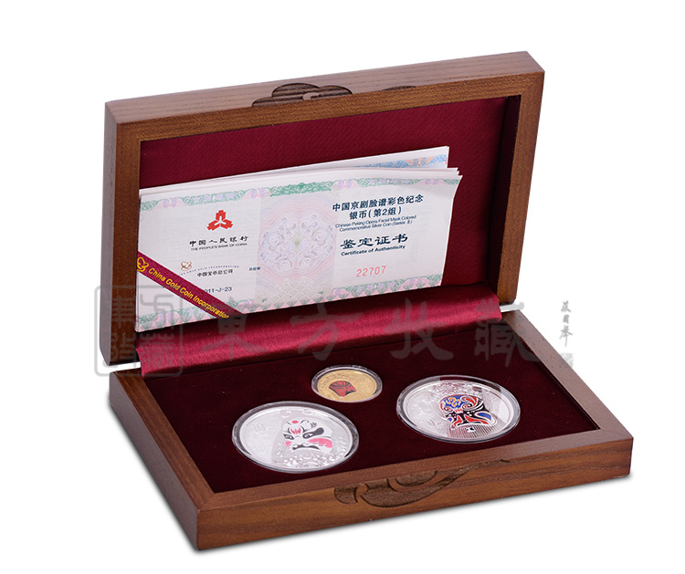 东方收藏 中国京剧脸谱彩色第一组金银币纪念币1/4盎司金+1盎司银*2枚