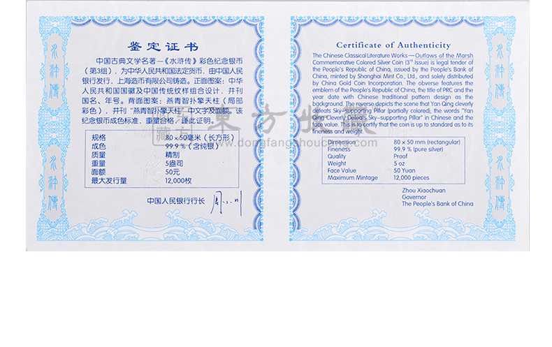 东方收藏承诺遵守商业道德,诚信为本、依法经营,接受会员监督。东方收藏所有藏品均有相关机构出具的证书,如果您发现虚假藏品,即可假一赔十。