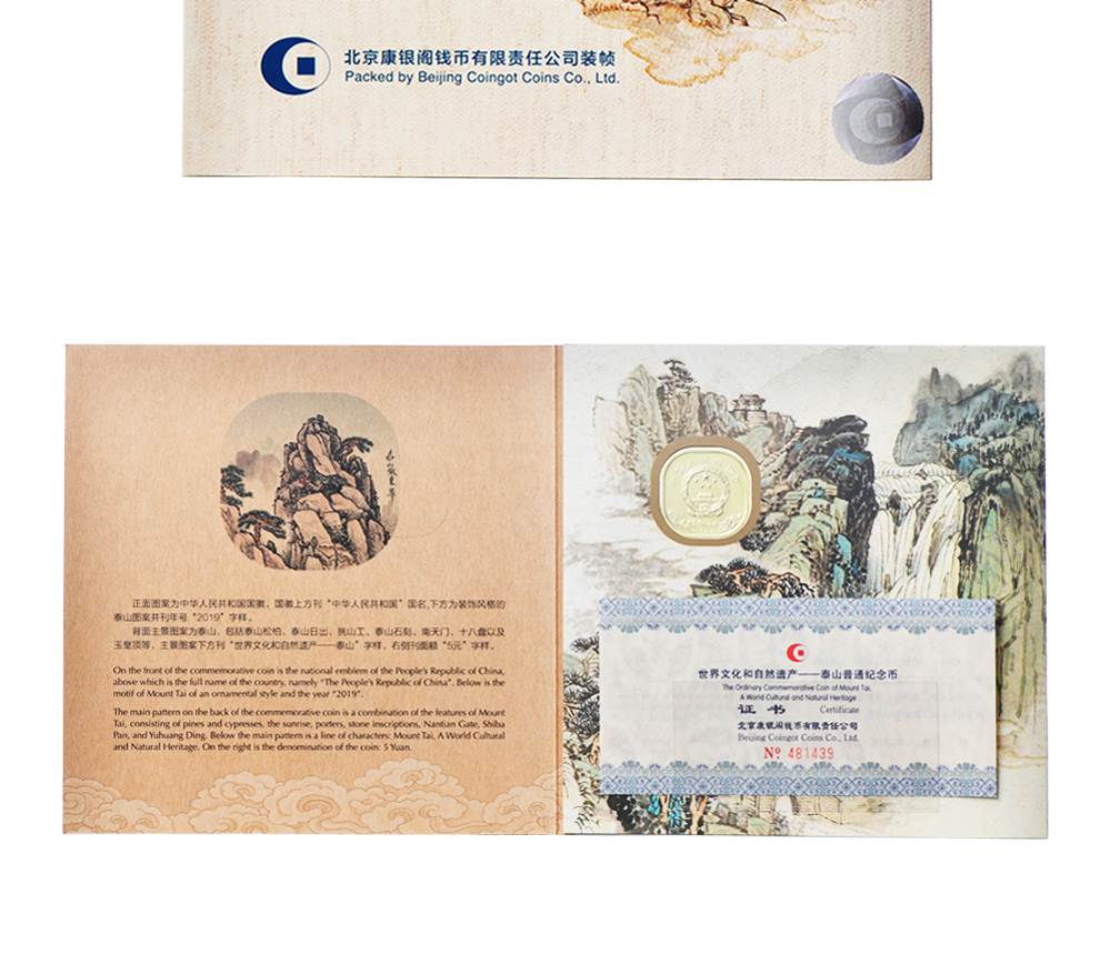 2019世界文化和自然遗产 泰山纪念币 康银阁装帧版